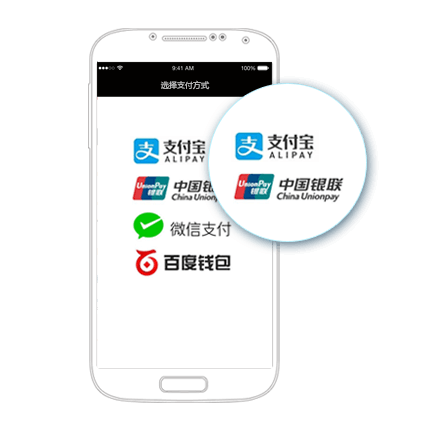 代码测试,为iOS/Android原生/H5 App提供支付解决方案:支持微信支付、支付宝支付、银联手机支付、百度钱包等。
